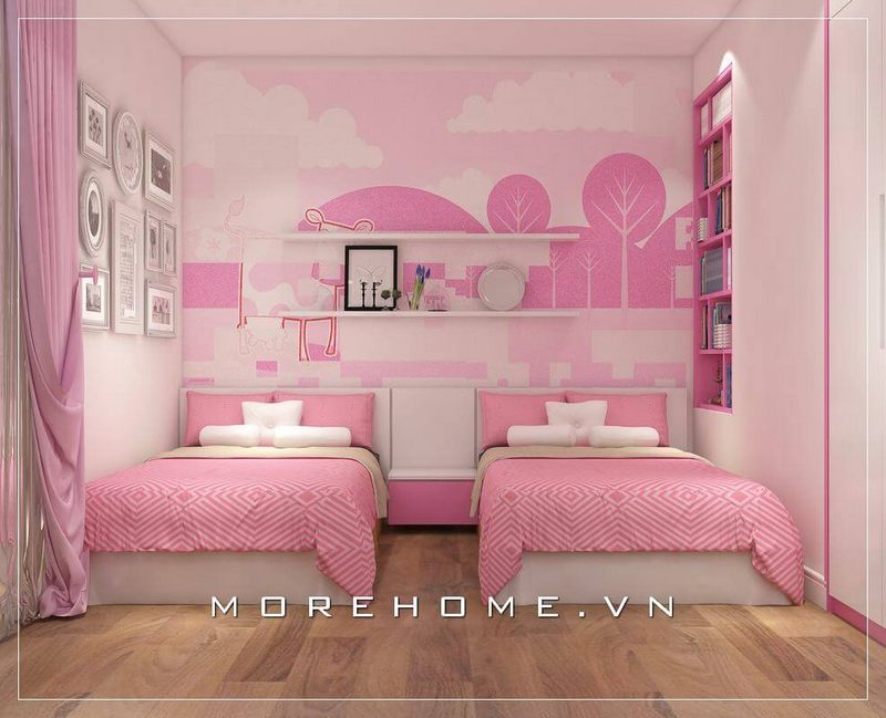 Giới thiệu mẫu giường ngủ gỗ công nghiệp cho 2 bé gái tại chung cư, nhà phố hiện đại