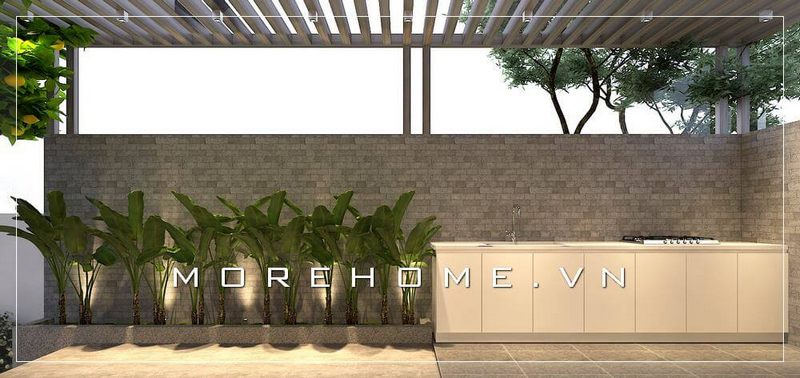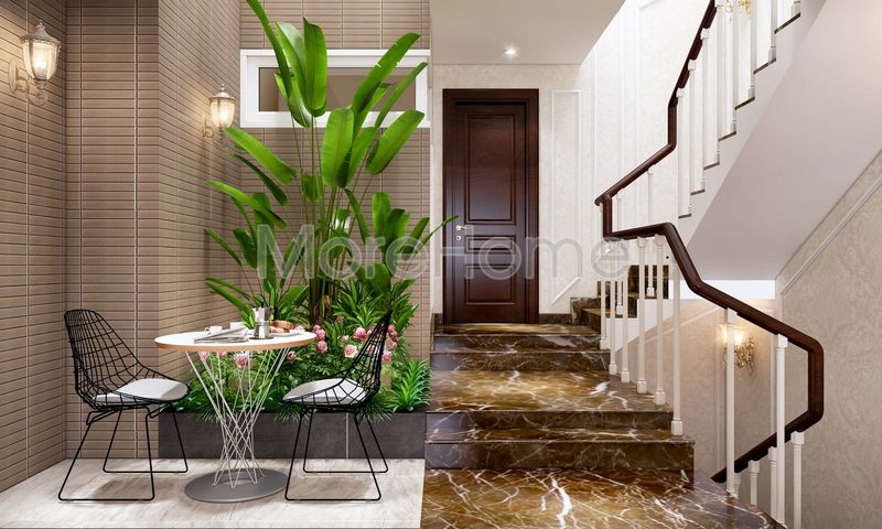 Khoảng sân bên ngoài biệt thự, nhà phố được thiết kế thoáng đãng, rộng rãi phục vụ cho nhu cầu sinh hoạt thư giãn ngoài trời của gia đình.
