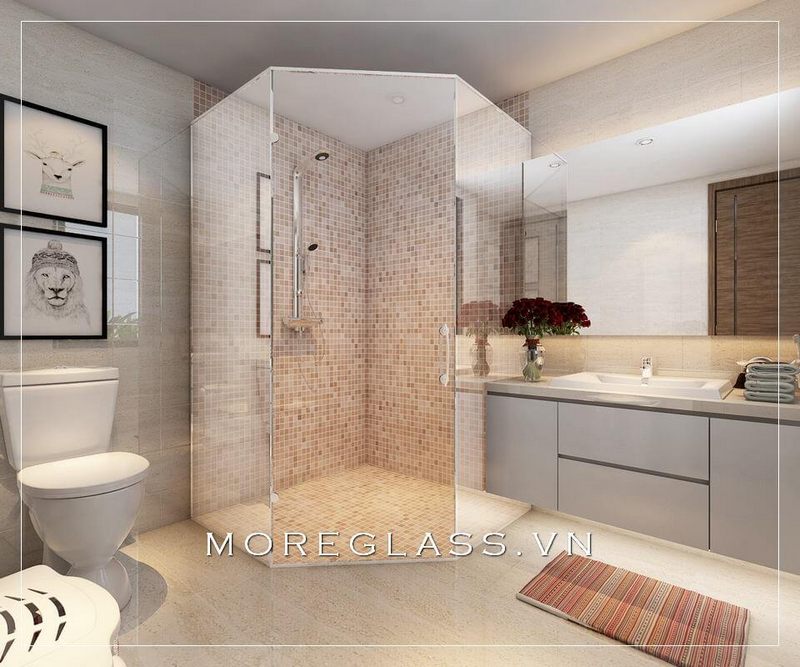 Vách tắm kính cường lực an toàn được lựa chọn mang lại cho không gian phòng tắm rộng và thoáng hơn
