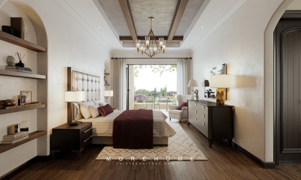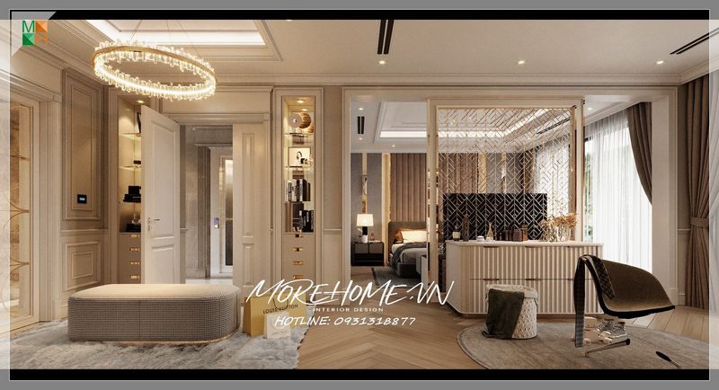 Thi công nội thất tân cổ điển đẹp với không gian phòng ngủ biệt thự sang trọng tại Ciputra Tây Hồ Hà Nội