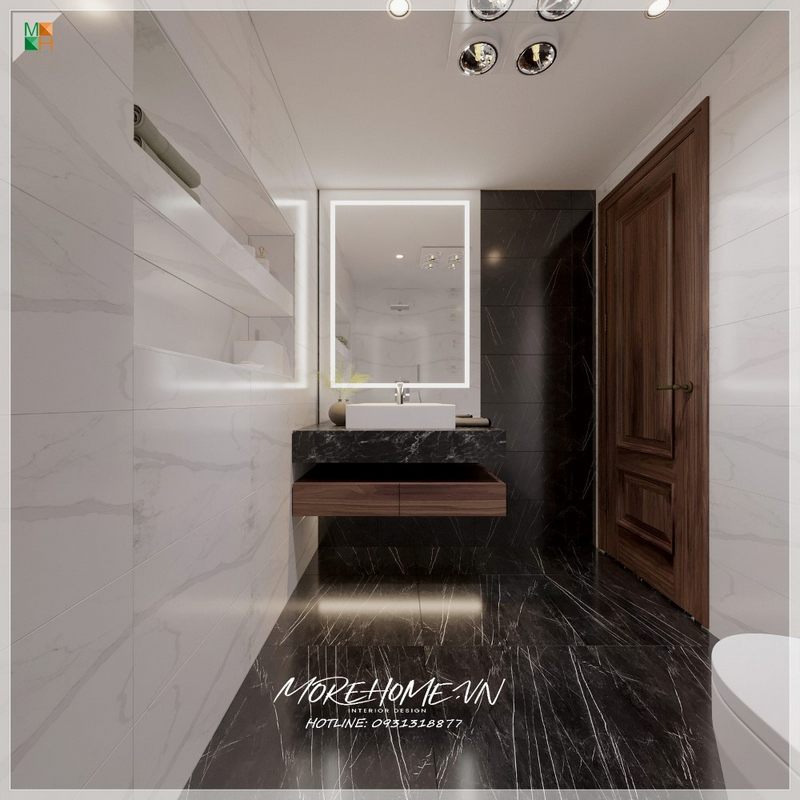 Kệ tủ lavabo treo tường gỗ công nghiệp mặt đá đen hiện đại sử dụng tối ưu thích hợp với sử dụng của gia chủ