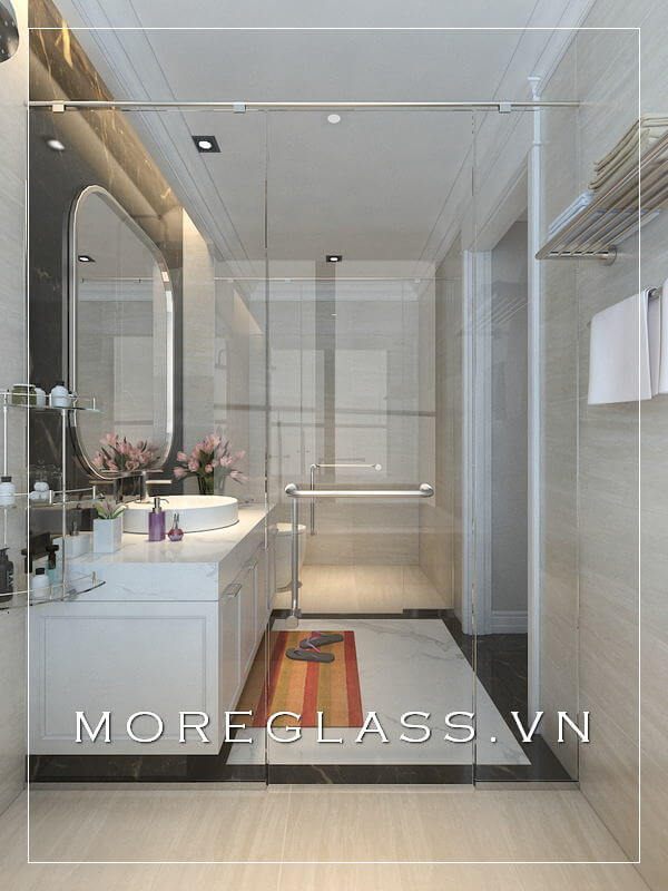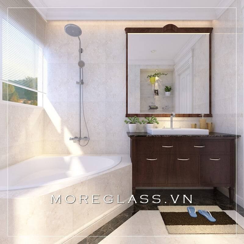 được thiết kế đẹp và sang trọng, có vách tắm kính để tạo sự thoải mái cho người sử dụng.